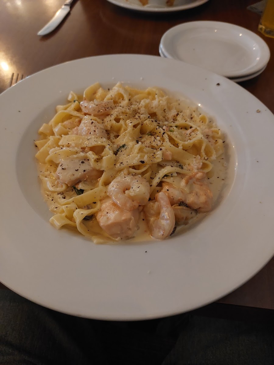 Lovely restaurant Very attentive servers who are really polite and helpful. I had garlic bread and salt and pepper shrimp with aioli sauce for starters. Wow that sauce is amazeballs. The mains were meatballs with gnocchi. Tbh, it was well cooked but probably not my cup of tea. I felt the prices were decent. Some other guests in there were quite loud though but no fault of the restaurant.
